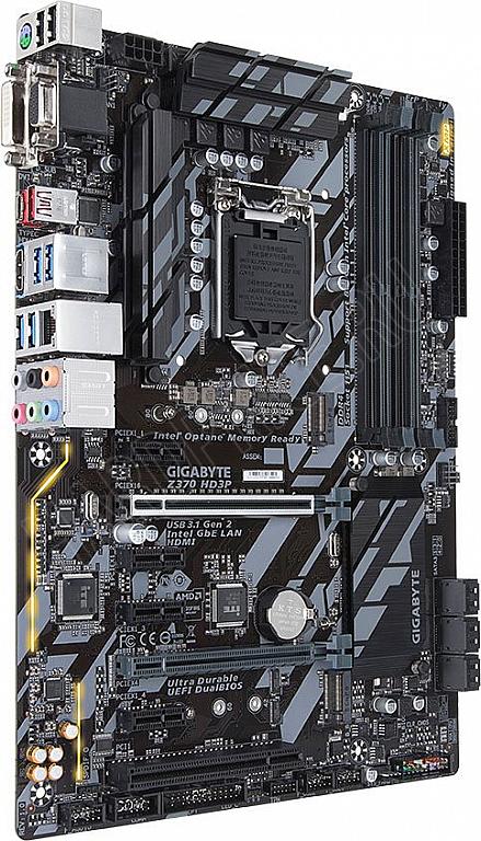 Socket 1151 v2, Intel Z370, 4xDDR-4, 7.1CH, 1000 Мбит/с, USB3.1, USB 3.1 Type-C, D-Sub, DVI, HDMI, ATX, Retail GA-Z370-HD3P